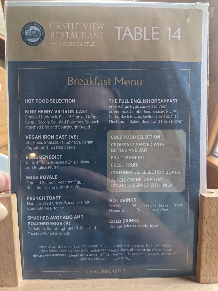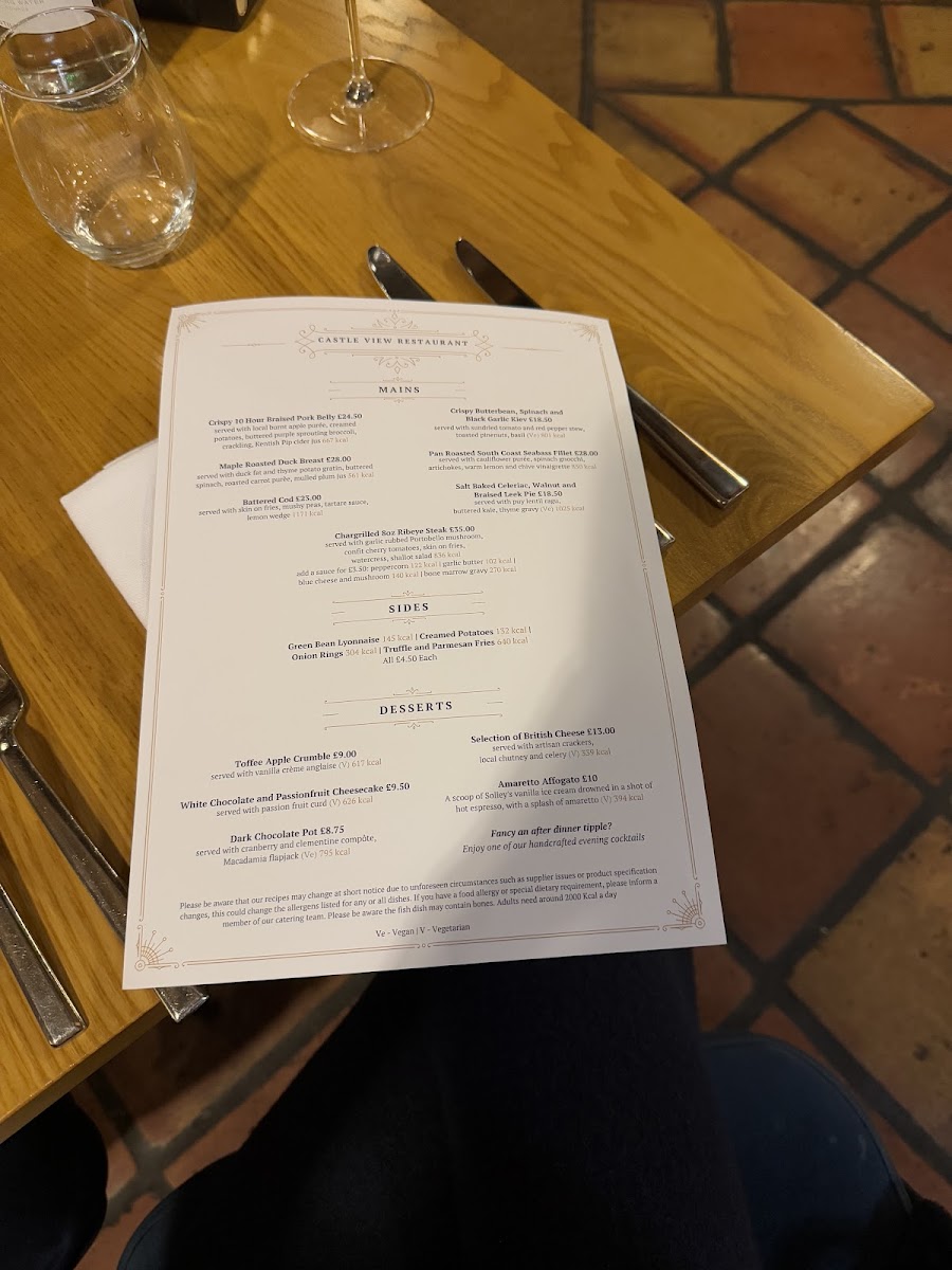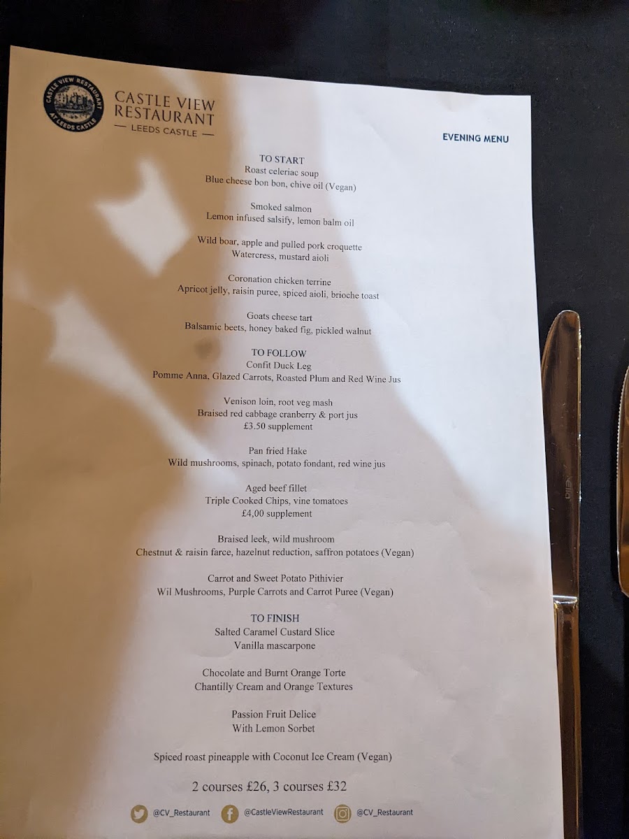 Castle View Restaurant at Leeds Castle Menu